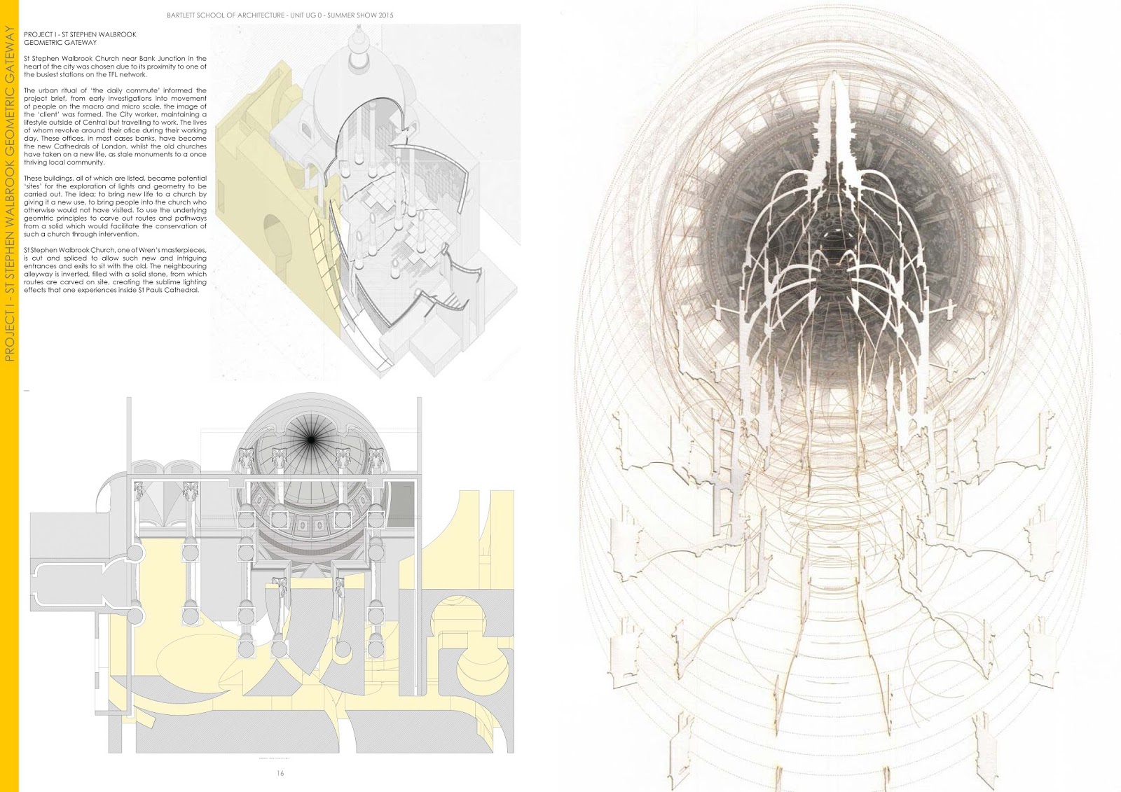 Initial project: To start the year, you will be asked to investigate your personal understanding of London through an artifact or perhaps a series of artifacts that explore ideas of softness in relation to a specific area of the city which we will suggest. Your artifact(s) should aim to introduce you to a different set of sensibilities and ideas which will provide you with a new understanding of London as the ‘soft city’. Your approach in Project 1 can be openly experimental, addressing for instance the notion of digital craft through the making of large-scale, physical working models, layered spatialised drawings, material explorations, or various hybrid processes. To help in this task, we will be organising workshops to teach relevant computer skills and digital fabrication and photographic techniques. Your large-scale investigations/prototypes should combine fixed methods of representation (models, photos, sketches, paintings) along with more ephemeral time-based media (video, film). Importantly, the ideas that you begin to develop in the first project should act as the test-bed for your main design proposal for the year.